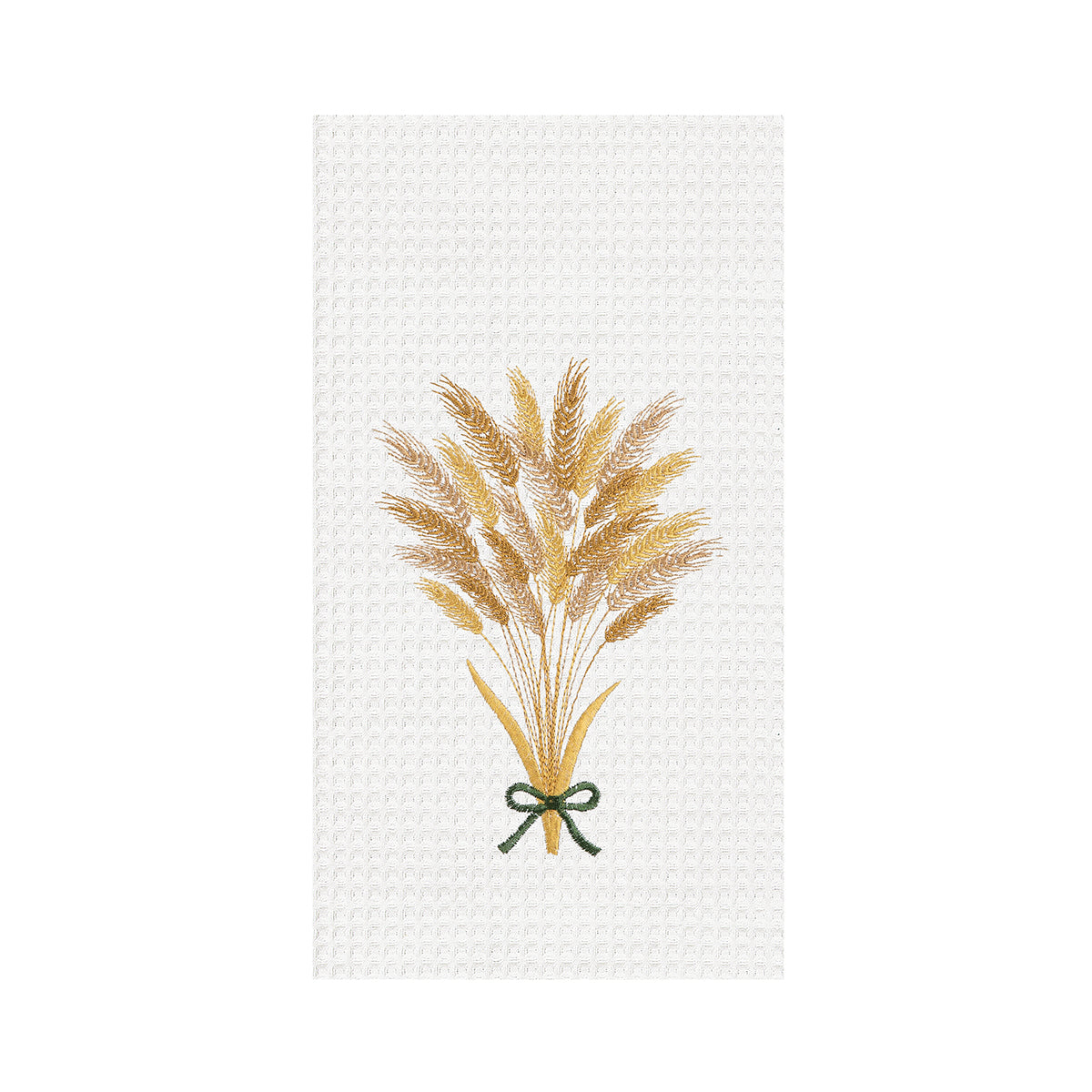 Welcome the coziness of the harvest season with this cotton Wheat Bouquet Embroidered Waffle Weave Towel. It features a simple wheat bouquet in an autumnal hue. Perfect for a warm fall kitchen.