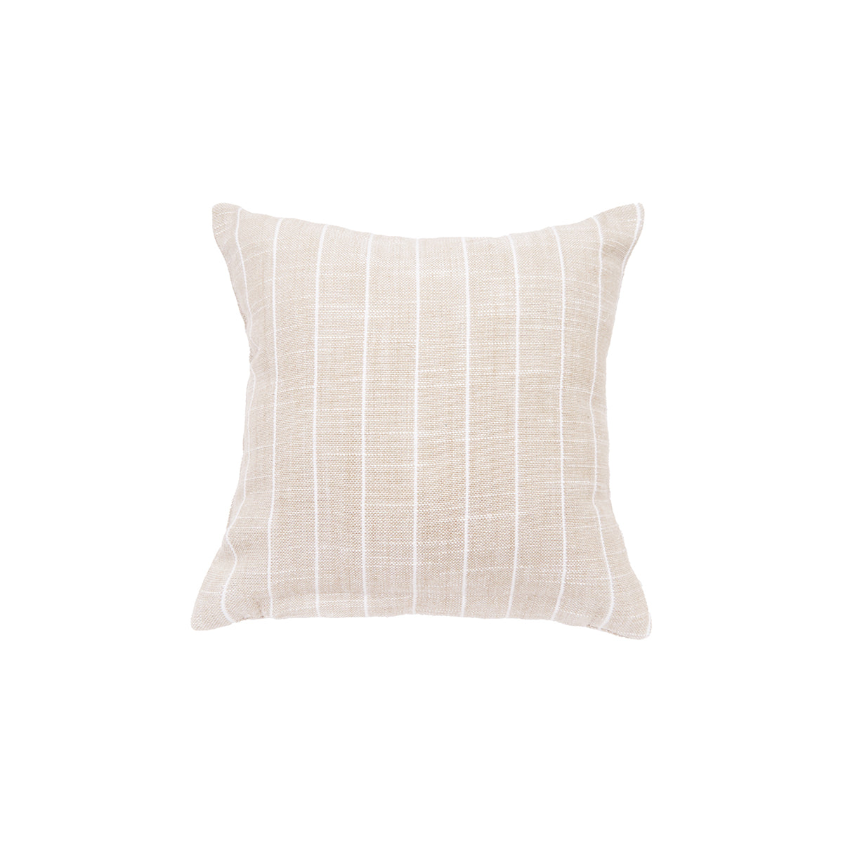 Featuring a neutral background with delicate white stripes, this applique pillow is adorned with a charming white leaping rabbit, complete with a delicate bow around its neck.
