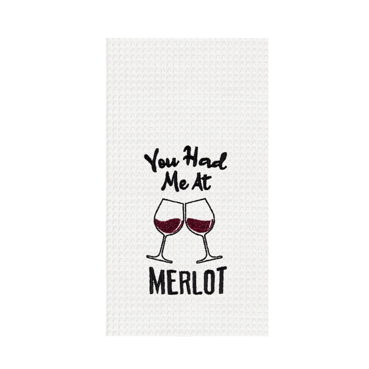 Declare some affection for Merlot with the You Had Me At Merlot Kitchen Towel. This witty embroidered towel features a variety of playful fonts paired with a glass of this classic red wine. Made from soft waffle weave fabric, it’s a fantastic way to add personality any your kitchen or to give as a gift.