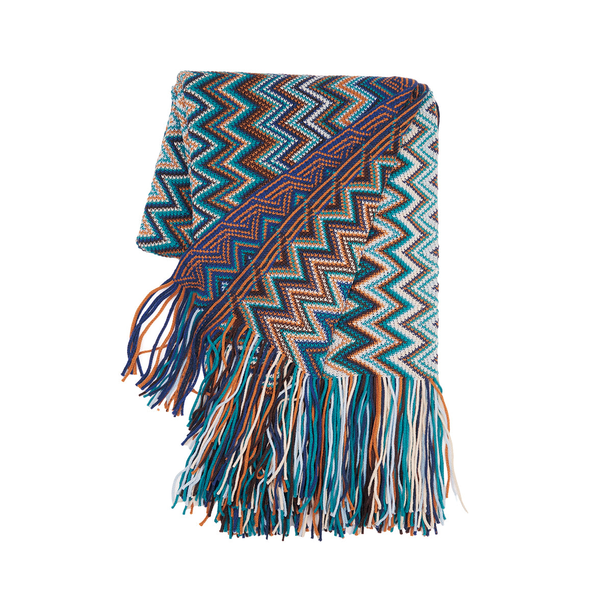 The Zig Zag Throw brings vibrant energy to any room with its mesmerizing rows of zigzag patterns in a kaleidoscope of colors. This eye-catching design creates a dynamic, textured look that instantly elevates everyday decor. Finished with fringed edges for an added touch of charm, this throw is perfect for draping over a couch or styling at the foot of a bed. Cozy and stylish, it’s a versatile accent that combines comfort with bold visual appeal, making it the perfect finishing touch.